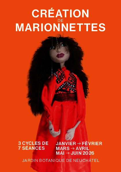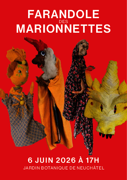 Pour valoriser l'ensemble du travail de création réalisé lors des différents ateliers, le Jardin botanique et l'Atelier des musées invitent la population neuchâteloise à réaliser une farandole de marionnettes lors du vernissage de l'exposition "Sauvages" qui aura lieu le samedi 6 juin 2026. Cette parade est placée sous le signe de la solidarité, au nom de toutes les populations qui vivent dans ou par la forêt. Une belle occasion de réveiller la marionnette qui sommeille dans votre grenier ou qui s'ennuie dans l'un de vos placards.