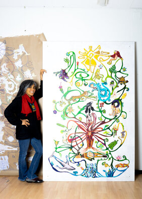 Cet atelier part de L'Arbre de vie, une fresque en relief inspirée de la tradition mexcicaine que Maricela Salas Rico a réalisée pour le Jardin botanique.